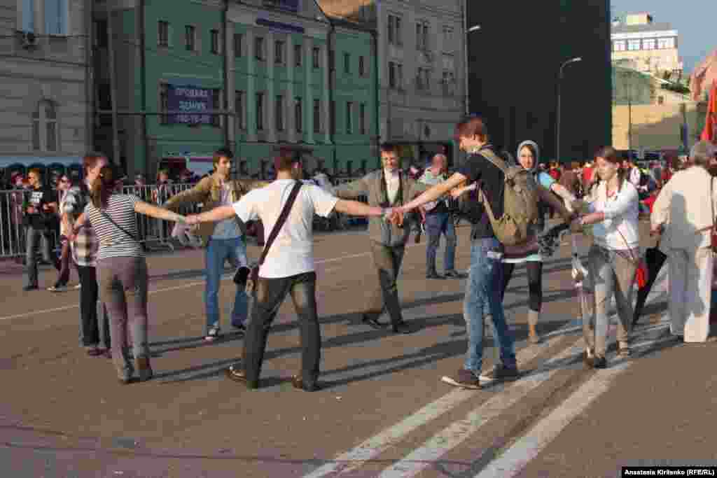 Участники несостоявшегося митинга не уставали общаться с ОМОНом