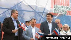 Участники демонстрации прошли торжественным шествием, приуроченным, к празднику весны и труда. Колонны формировались на пересечении улиц Самокиша и Кирова. Потом они прошли вдоль площади Ленина и здания Совета министров. В шествии участвовали «депутаты госсовета», члены «правительства», городских органов власти, «полномочный представитель Российской Федерации» в «Крымском федеральном округе».