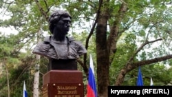 В Симферополе на Суворовском спуске по улице Набережной крымские «власти» вместе с организаторами проекта «Аллея российской славы» открыли памятник барду, поэту и актёру Владимиру Высоцкому. Об этом сообщает корреспондент Крым.Реалии с места события.