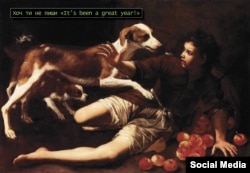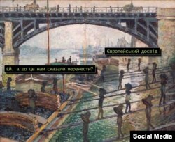 В частности, паблик «Художественные таблетки» в сети Facebook с особым энтузиазмом и довольно оригинально высмеивает украинскую действительность. Используя произведения классической живописи, пользователи группы добавляют к ним меткие надписи на злобу дня.