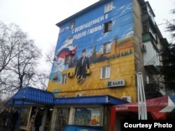 Надпись «С возвращением в родную гавань» с портретом Путина нарисовали московские художники после так называемого референдума.