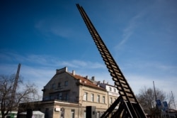 Первым камнем будущего мемориала стала скульптура Алеша Веселого, который на небольшой площади перед пока заброшенным вокзальным зданием установил часть железнодорожной колеи, уходящей в небо. По словам автора, эта колея, по которой сто лет ездили поезда, – символ так называемой лестницы Иакова. Один из трех библейских патриархов увидел лестницу во сне, как она соединяет Землю и небо.