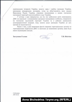 Общественники указали на эти слова главы ГМСУ в своем письме, однако в миграционной службе этот момент проигнорировали. «Каково же было наше удивление, когда замначальника миграционной службы, то есть непосредственный подчиненный чистосердечно признавшегося чиновника, во-первых, полностью опровергает слова своего начальника и указывает на то, что ГМСУ не контактирует с незаконными органами, созданными на временно оккупированных территориях. Во-вторых, указывает на то, что в случае выявления такого контакта их территориальных органов ими «будут предприняты соответствующие меры», ‒ возмущается юрист.