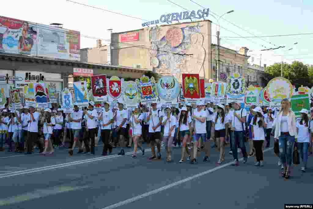 От площади Куйбышева до памятника Ленину состоялось шествие, в котором приняли участие представители политической партии «Единая Россия», работники предприятий города, воспитанники различных творческих объединений и спортивных секций, а также крымские казаки. Затем на площади Ленина прошел концерт.