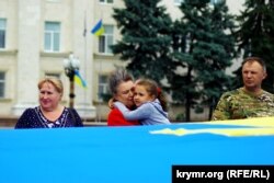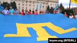 Участники прошедшего на площади Свободы митинга скандировали «Крым – это Украина!» на украинским и крымскотатарском языках, а также спели гимны Украины и крымскотатарского народа.