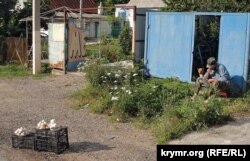 А это крымскотатарский поселок Мамут Султан в пойме Салгира в районе села Доброе. Несколько домов имеют жилой вид, но, в основном, все не достроено и заброшено. Людей не видно.