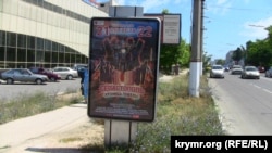 Как сообщает корреспондент Крым.Реалии, с недавних пор в Севастополе начали появляться билборды, плакаты и телекоммуникационные стенды с рекламой байк-шоу, которое пройдет с 21 по 22 августа 2015 года в Севастополе возле горы Гасфорта и будет именоваться «Кузница победы».