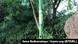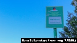 И если этот знак трогать побоялись, то на табличках попроще кто-то пытался исправить надпись «Мис Плака» на «Мыс Плака» обычным черным маркером. А герб Украины просто залепили наклейкой с триколором и российским гербом.
