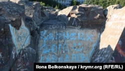 В маленьком поселке Утес на Южном берегу Крыма проживает до двухсот человек. Кроме моря, возле которого расположились многочисленные курортные заведения, здесь находится дворец княгини Гагариной у самого подножия мыса Плака. Я искала в Утесе заполненные туристами пляжи, которых не оказалось на Западном берегу, но не нашла их и тут. Однако в одном из магазинов поселка меня тронула экспозиция детских рисунков. Рисунков без туристов, но с морем, самолетами и танком. А на скалах мыса Плака я заметила уже старую надпись, сделанную желтой и синей краской: «Донецк. Люба. 20.08».
