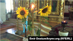 Женщины обнялись, переговорили о чем-то, а затем отправились в храм. Здесь был запланирован праздничный молебен по случаю 24-й годовщины провозглашения независимости Украины.