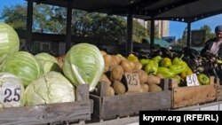 Яблоки на рынке нынче исключительно крымские, благо, урожайный год. Обычно значительная часть яблок привозилась с материковой Украины.