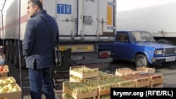 Два года назад осенью на этом месте стояли фуры из Украины с яблоками и грушами, теперь импорт пошел другой.