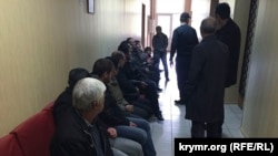В 14 часов в коридоре суда собрались более 20 человек – группа поддержки Али Асанова из родственников и активистов крымскотатарского движения. Среди присутствующих находилась супруга Асанова Эльнара с двумя детьми – пятилетней Гульнарой и четырехлетним Мухаммедом. Судебные приставы заявили присутствующим, что всем желающим места в зале не хватит, поэтому в первую очередь на заседание пустят супругу, отца, брата и еще нескольких родных.