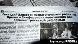А в продолжение той церемонии вручения на 10-й полосе отдельная статья с заголовком «В администрации города Симферополя состоялось очередное оперативно-хозяйственное совещание под руководством главы городской администрации Геннадия Бахарева». И почти половину статьи составляет перечисление чиновников, которые при этом присутствовали.
