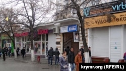 Народ по-прежнему спешит снять нал, пока есть электричество – главный офис РНКБ, отжатый у «Приватбанка».