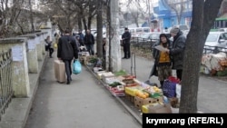 Продукты не подорожали. Но вот этот кадр демонстрирует сущность городских властей (да и всех остальных в Крыму). Это так называемые «незаконные» торговцы, которых в очередной раз прогнали с рынка.
