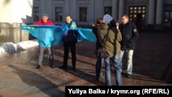 В Киеве под зданием Министерства иностранных дел Украины 12 февраля прошла спонтанная акция с требованием отреагировать на массовые обыски и задержания крымских татар, которые прошли накануне в Крыму и продолжились утром в пятницу. Акция оказалась немногочисленной, в министерстве пообещали отреагировать отдельным заявлением на происходящее в Крыму, сообщает Крым.Реалии.