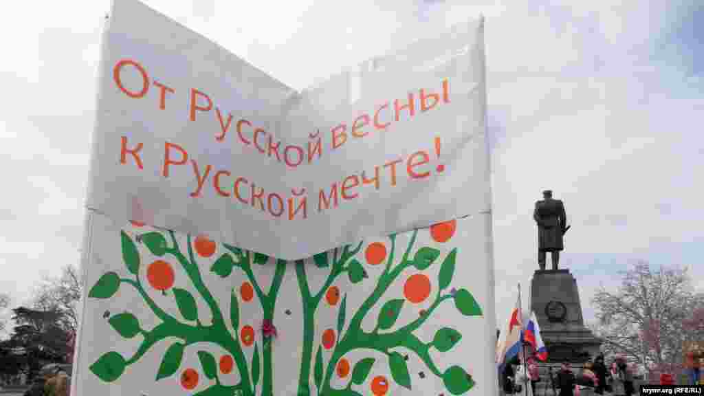 В Севастополе 18 марта, на центральной площади Нахимова, прошел митинг, посвященный второй годовщине российской аннексии Крыма. В мероприятии приняли участие представители молодежной организации партии «Справедливая Россия», партии «Единая Россия», а также представители местных и российских казачьих организаций.
