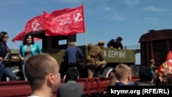 В рамках празднования Дня освобождения города от немецко-фашистских захватчиков в Керчь прибыл «Поезд Победы». Как сообщает корреспондент Крым.Реалии, попасть на железнодорожный вокзал Керчи в этот день было непросто. Власти закрыли движение троллейбусов в этом направлении, а маршрутки шли переполненные.