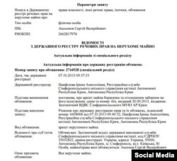 «Это выписка из государственного реестра имущественных прав, я купил эту выписку. Я официально приобрел этот документ, это доступно любому гражданину Украины, по сути, это открытый реестр», – рассказал Крым.Реалии Сергей Мокрушин.