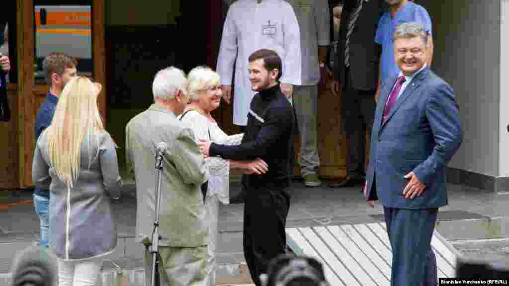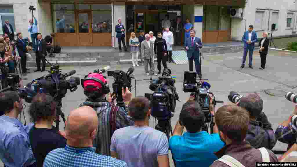 После прибытия украинцев на родину прошел брифинг президента Украины Петра Порошенко и освобожденных из российского заключения Геннадия Афанасьева и Юрия Солошенко