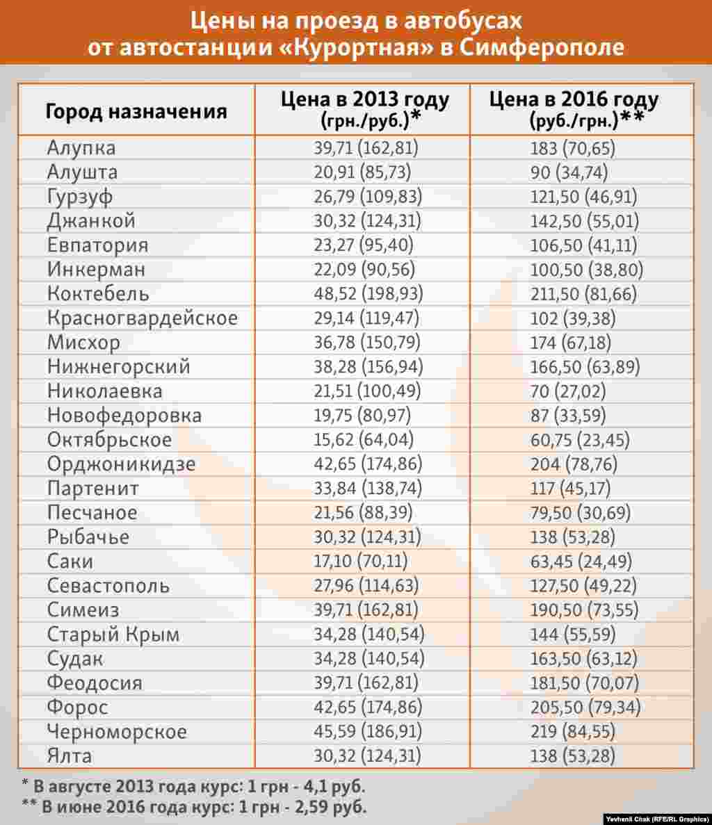 Цены на проезд в междугородних автобусах Крыма (инфографика)