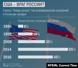 По сравнению с прошлым годом, меньший процент россиян считает США врагом.