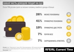 Большая часть россиян, если верить данным опроса, тратит на еду от 50% дохода своей семьи.