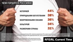 В первую очередь жители России гордятся историей, естественными богатствами и войсками. Но не только этим.