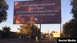 В Херсоне на выезде из города в направлении аннексированного Россией Крыма, а также на вокзале и по городу появились билборды с обращением к украинцам, которые едут в Крым: «Украинский отдыхающий! Едешь в Крым? Все фотографируй и запоминай там: военную технику, базы, радары». Автор идеи Антон Ходза рассказал Крым.Реалии о цели обращения.