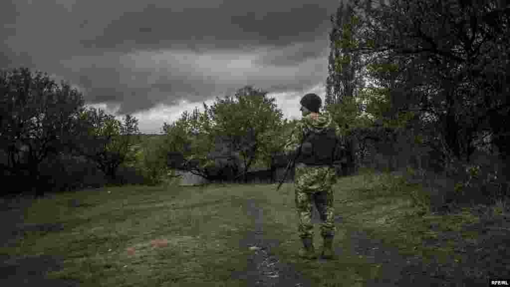 В режиме ожидания. Женщина присела отдохнуть на переходе между контрольными пунктами боевиков и украинских военных