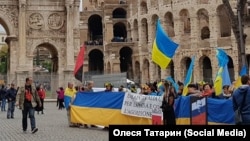 В Риме в рамках второй мировой акции «Стоп войне Путина в Украине» 13 октября состоялся митинг-протест. Как сообщает корреспондент Радiо Свобода, под стенами Колизея и у арки Константина собрались полсотни активистов украинского общества с антивоенными лозунгами и национальной символикой.