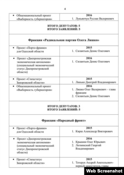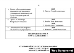 Украинские СМИ в четверг опубликовали документ из так называемого взломанного почтового ящика советника президента России Владислава Суркова. В нем, в частности, анализируют, сколько украинских депутатов поддержали различные «автономистские» проекты в 2015-2016 годах. Первый в списке ‒ «Порто-франко». А дальше: проект «спецстатуса Запорожской области», проект «Днепропетровская экономическая автономия», проект «Слобожанщина».