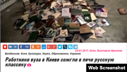 Сайт российского канала Минобороны «Звезда» вышел с заголовком: «Изумительное варварство: в Киевском институте печь топят книгами».