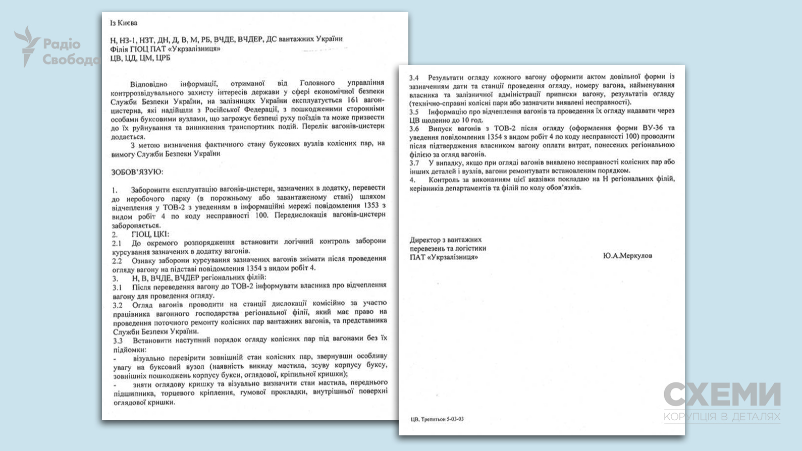 Часть цистерн задержали в качестве вещественных доказательств. В начале февраля «Укрзализныця» запретила региональным подразделениям эксплуатацию 161 вагона-цистерны со сжиженным газом, относительно которых СБУ проводит расследование. Основанием также послужило письмо СБУ.