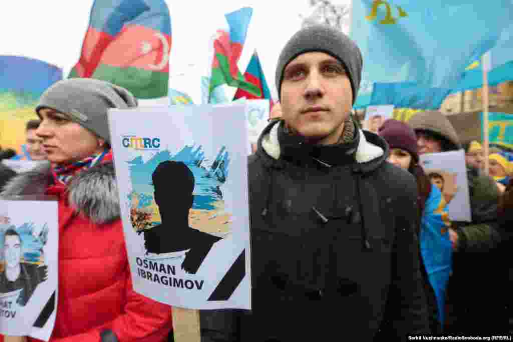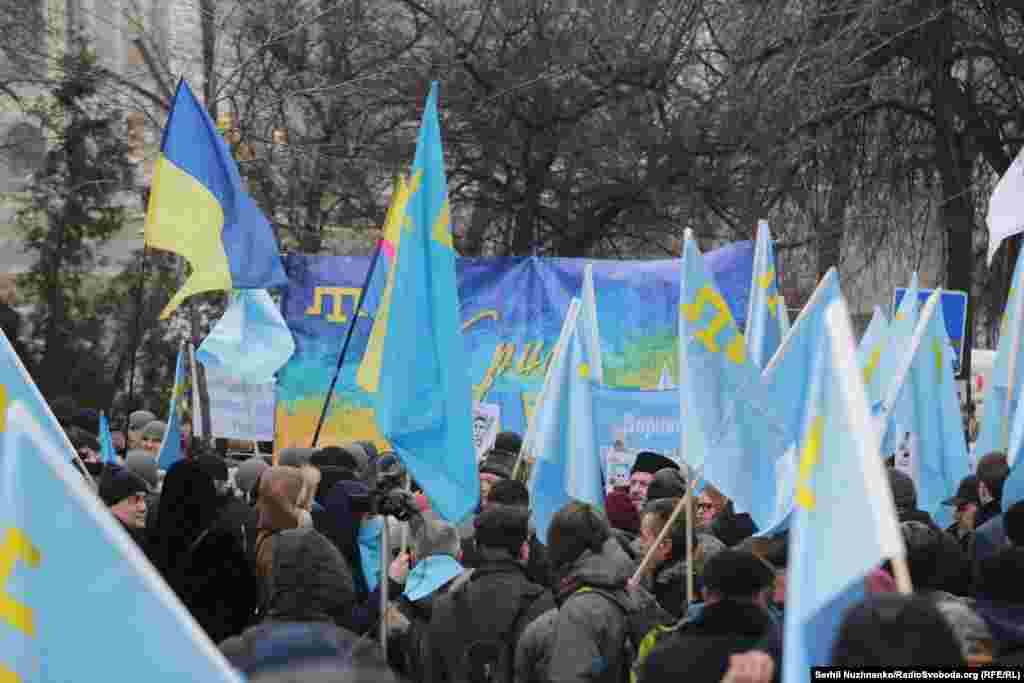 Народный депутат Украины, лидер Меджлиса крымских татар Рефат Чубаров на марше в Киеве