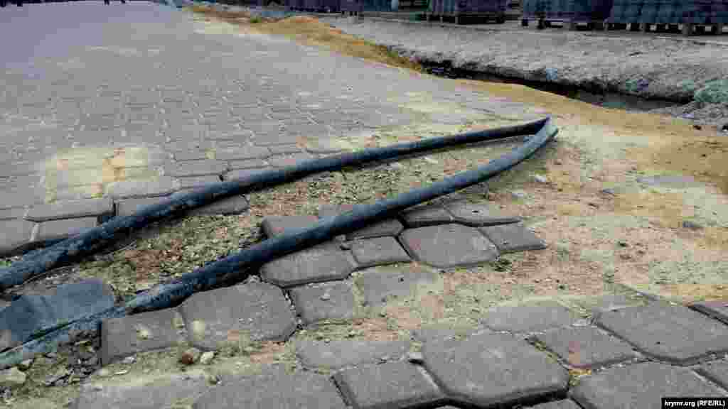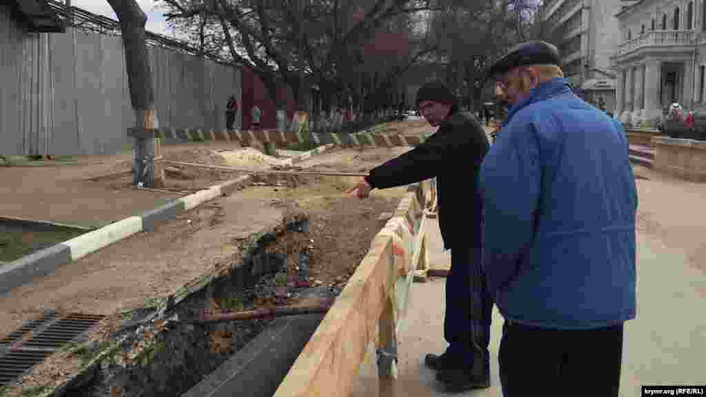 Тем временем большая часть набережной в Феодосии разрыта, а траншеи с трубами стали местом для прогулок детей