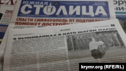 «Южная столица» в статье «В вышиванках в НАТО шагом марш!» комментирует решение Верховной Рады Украины поддержать закон, который вносит коррективы во внешнеполитический курс Украины и ставит целью вступление страны в НАТО. «Это была настоящая перемога! ‒ иронизирует автор. ‒ А один из депутатов, выступая с трибуны в камуфляжной форме, так, как ему кажется, он выглядит более устрашающе, пообещал всем тем, кто не будет голосовать, ночь длинных ножей. И сейчас все те, кто взял в руки оружие, уже гладят себе новенькие вышиванки, чтобы отличаться от войск НАТО, ведь воевать должны эти самые мирные войска, а они, как принимающая сторона, будут командовать, да сало с русской водкой пить».