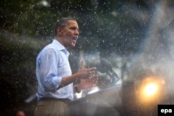 6. На фотографии, которая представлена ниже, бывший президент США Барак Обама дает речь в штате Виргиния во время своей второй предвыборной кампании в 2012 году.