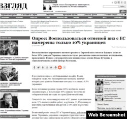 «Воспользоваться упрощением визового режима с Европейским союзом в будущем хотят не больше 10% граждан Украины, свидетельствуют результаты социологического исследования, проведенного Фондом «Демократические инициативы» имени Илька Кучерива и социологической службой Центра Разумкова», ‒ пишет издание «Взгляд».