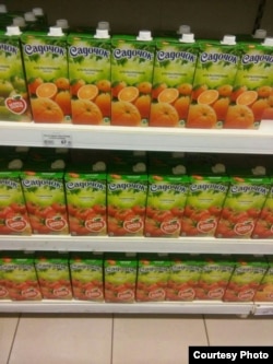 На полках магазинов видим некоторые украинские соки – николаевскую «Сандору» и «Садочок», одесский «Наш сок» – по цене от 54 («Садочок») до 71 («Сандора») рублей за литр. Много соков из России, их цена стартует от 40 рублей за литр. Обнаружили также на прилавке «Моршинську» – 41 рубль за полтора литра.