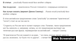Российская служба BBC проанализировала текст фейкового интервью: «Построение предложений в тексте часто повторяет модели русского языка, а некоторые слова употреблены так, будто автор при переводе не смог найти подходящего варианта на английском».