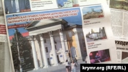 Издание пишет, что в конце августа сотрудники отдела судебных приставов «произвели принудительное исполнение решения суда о передаче Минимуществу Крыма недвижимости, принадлежащей республике». Из помещений на улице Севастопольской выселили служителей Украинской православной церкви (КП), при этом «особых инцидентов не случилось». Выселение якобы произошло «по чисто хозяйственным моментам». Речь идет о нежилых помещениях площадью 112,6 кв. м, расположенных на первом этаже здания по адресу Севастопольская, 17а, которое занимал так называемый храм Святых Равноапостольных Князей Ольги и Владимира УПЦ КП.