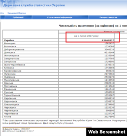 По информации ГСЗ, население Украины по состоянию на 1 июля 2017 года составляет 42 миллиона 467 тысяч человек.