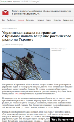Об этом пишет и издание «Лента.ру». «Построенная в Херсонской области вышка, которая должна была транслировать украинские радио- и телепередачи в Крым, вместо этого осуществляет вещание российских радиостанций на Украину. Об этом на заседании в Геническом райсовете рассказал глава районной администрации Александр Воробьев», – пишет издание.
