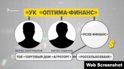 По данным Росреестра, основали московскую фирму два не очень приметных физических лица, но после покупки крымских предприятий у фирмы появился еще один соучредитель – компания «РСХБ-финанс». А с этого момента прослеживается связь с руководством России. Как выяснил Центр журналистских расследований, основатель фирмы «РСХБ-финанс» – торговый дом «Агроторг». А он, в свою очередь, – дочка «Россельхозбанка» – одного из крупнейших банков в России, который теперь кредитует свое же предприятие.