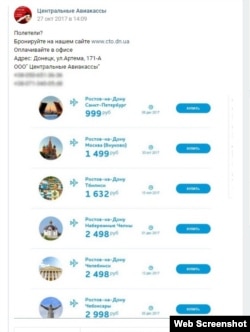 Этот российский город также связывают с авиабилетами. Ведь донецкие «Центральные авиакассы» продают дончанам билеты на авиарейсы в Москву, Санкт-Петербург, Екатеринбург, Чебоксары, Тбилиси, Баку, Сочи и Крым из аэропорта Ростова. И хотя на сайте компании упоминается о возможном вылете из Харькова, Днепропетровска и Киева, чтобы посетить Германию, Турцию, Армению, Грузию, Беларусь, билет предлагают приобрести российских авиалиний с вылетом из Ростова или Москвы.