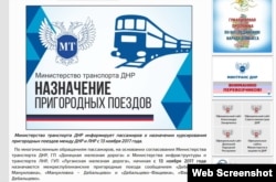 Железнодорожный транспорт на подконтрольной группировке «ДНР» территории – это пригородные электропоезда, которые связывают небольшие станции провинциальных городов в пределах «ДНР». Среди них – Ясиноватая, Иловайск, Углегорск, Байрак, Дебальцево… А с 13 ноября сепаратистские сайты заговорили о назначении «межреспубликанских поездов», которые будут курсировать между станциями ОРДЛО. Это также называют «первым международным маршрутом с «ЛНР». Поезда представлены сообщением «Дебальцево – Мануиловка», «Мануиловка – Дебальцево» и «Дебальцево – Фащевка», «Фащевка – Дебальцево».