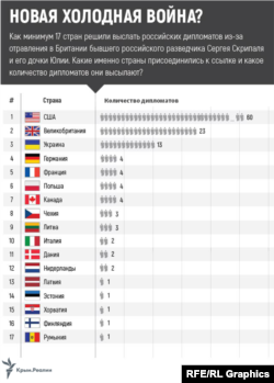 - Великобритания выслала 23 российских дипломата, которые, как считается, работали под дипломатическим прикрытием;