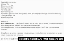 Свой расчет стоимости дрона "Почты России" произвел и пользователь с ником Otrezalka на сайте pikabu.ru. По его прикидкам, стоимость дрона могла составить до 240 тысяч рублей.